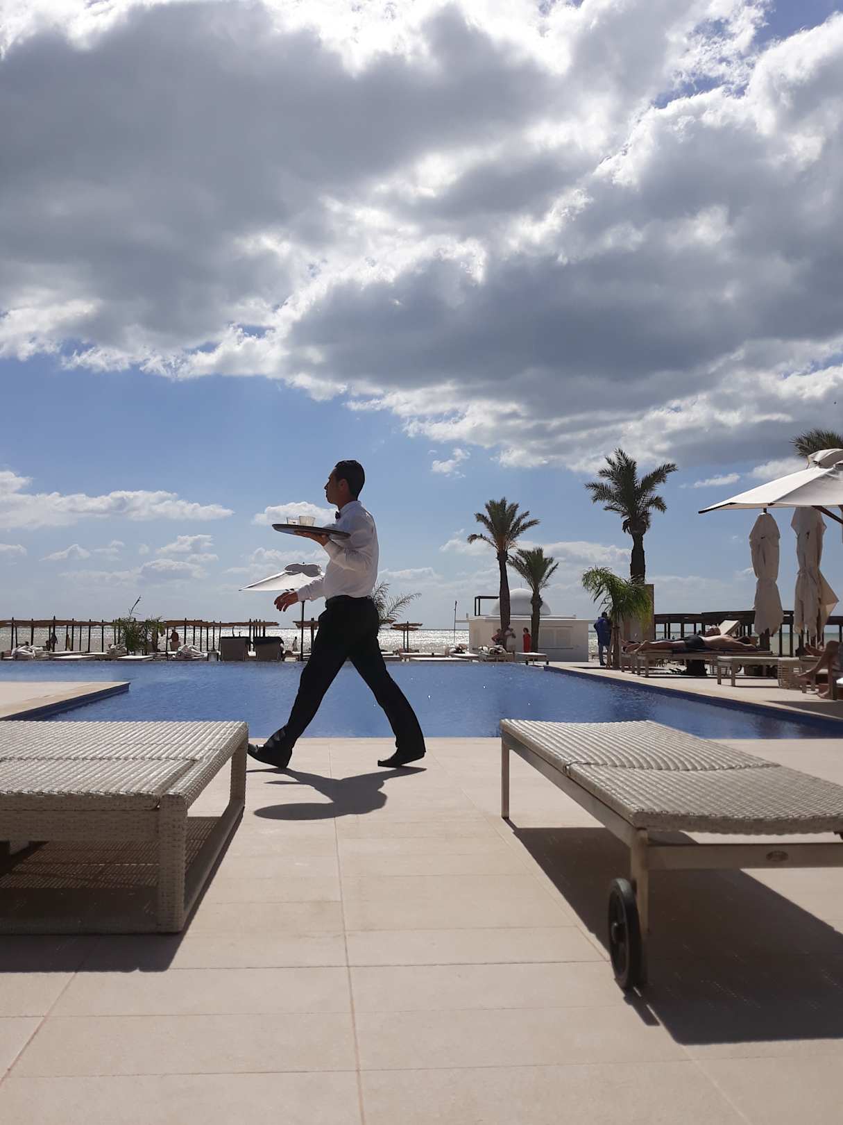 Es ranntenimmer 1-2 Kellner ùber den Pool und fragten an .