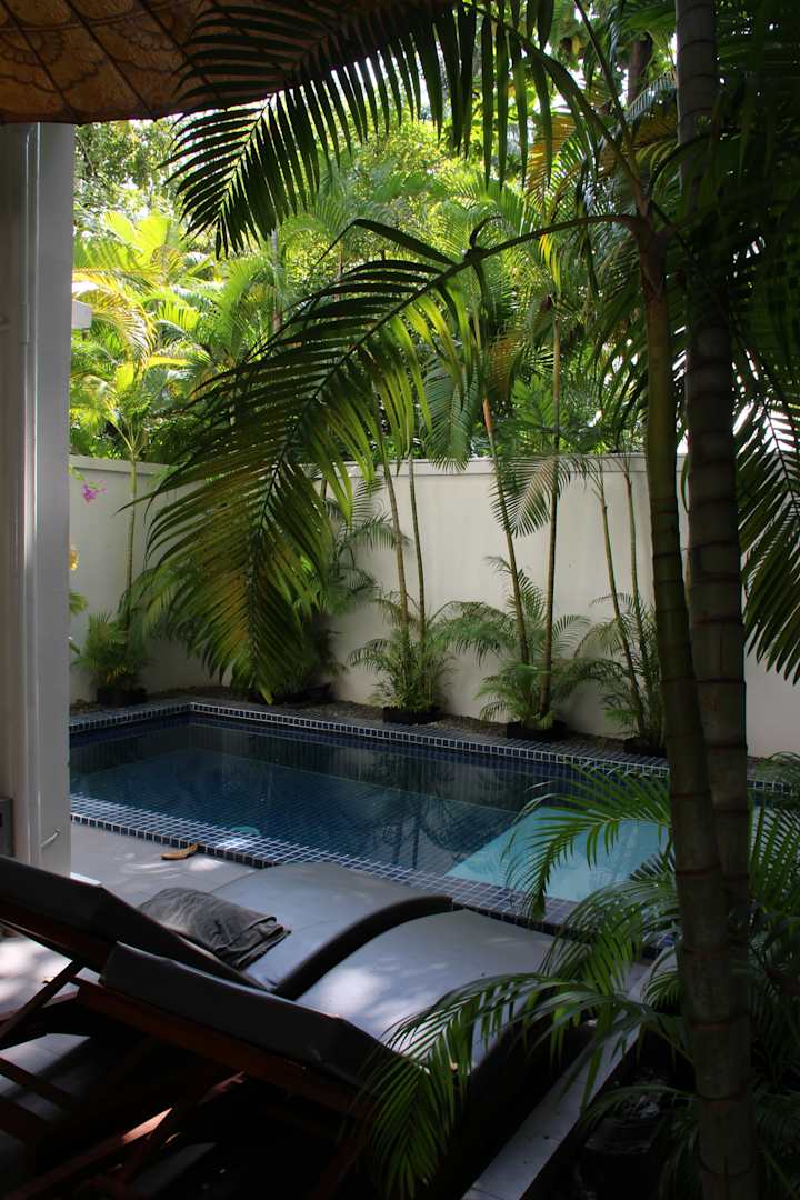 Aussenbereich eines Zimmers mit Pool