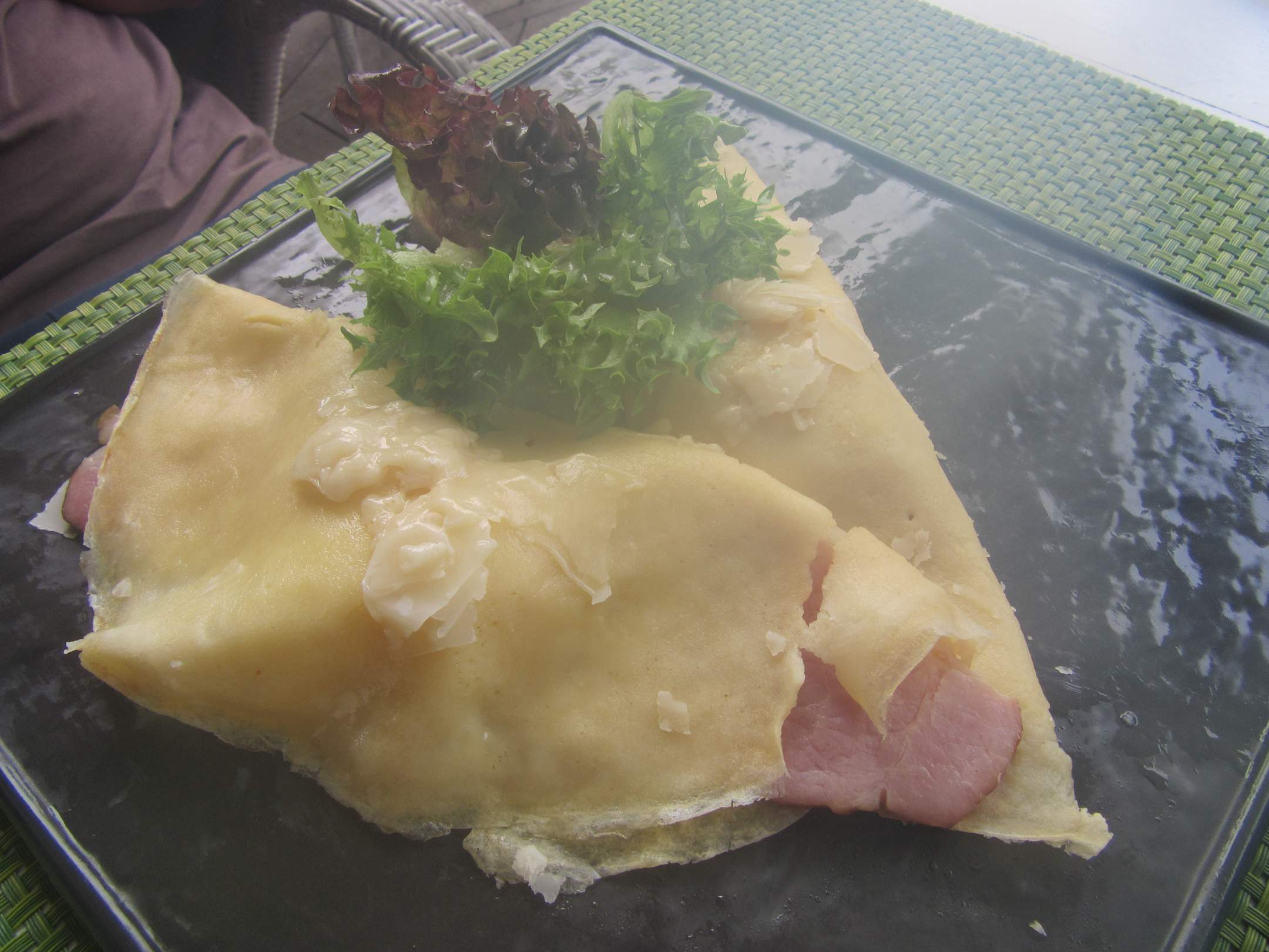 Frühstück Pfannkuchen mit Ei, Schinken