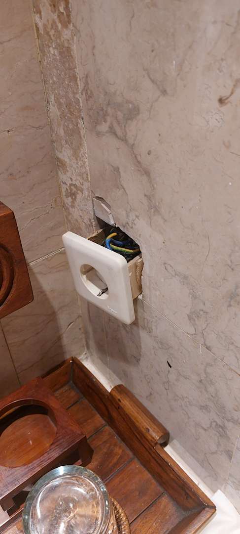 ZimmerSteckdose hängt aus der Wand