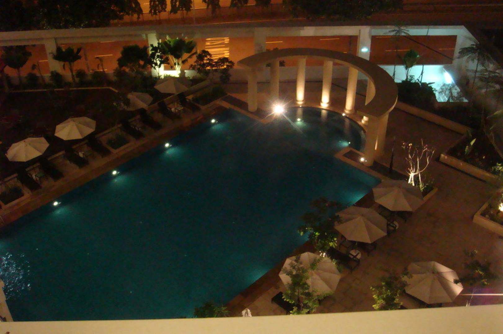 Pool vom 7 Stock bei Nacht
