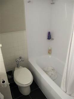 Das Bad hat keine 3 qm Größe. Außerdem kommt das Wasser manchmal nur lauwarm. Dem Nachbarn kann man bei seinen Geschäften auf der Toilette gut zuhören !