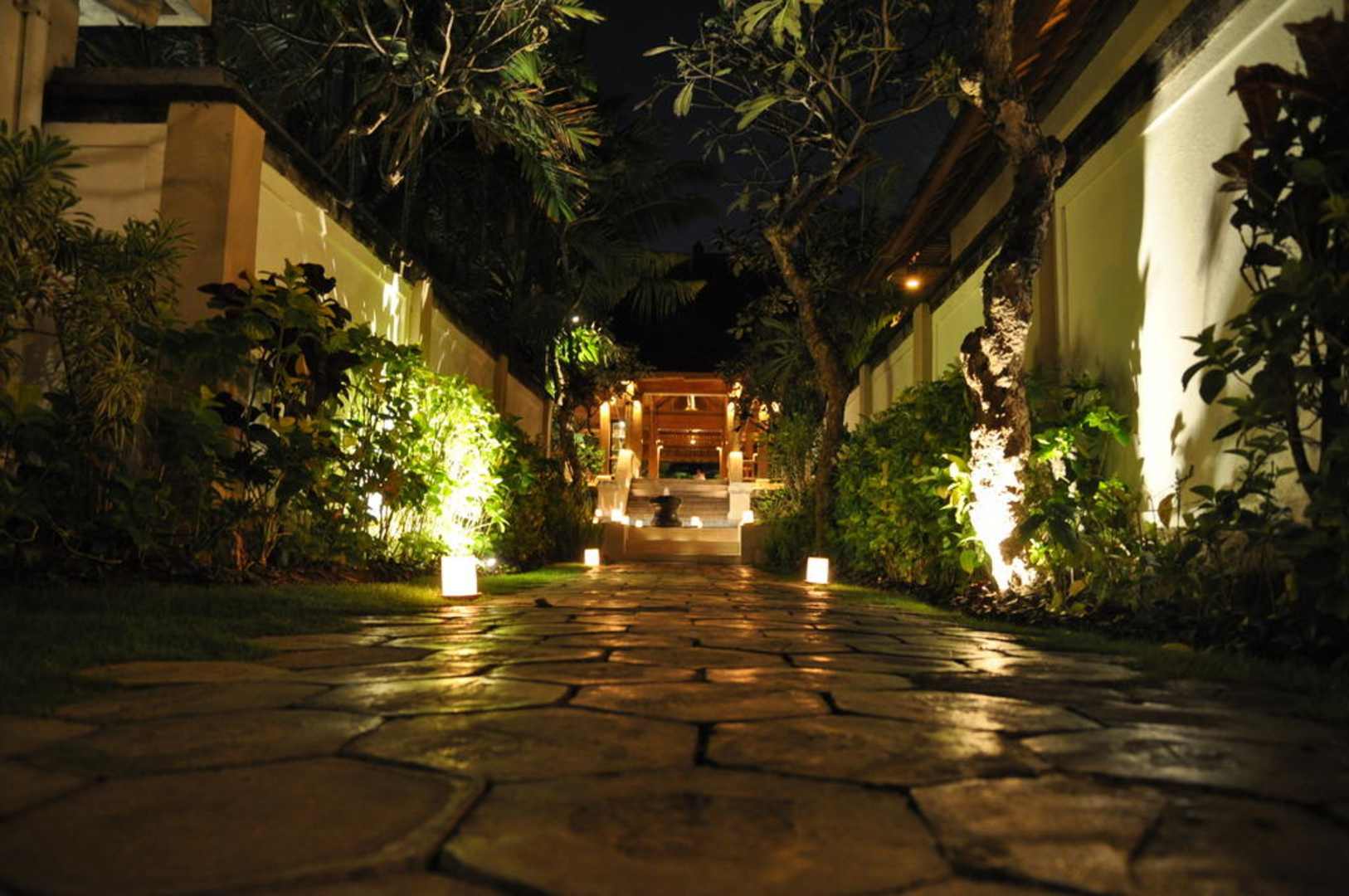 Gartenanlage bei Nacht