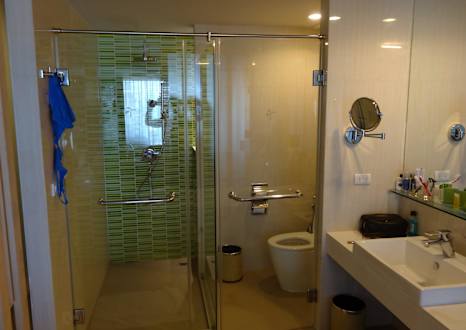 Sowohl Dusche wie WC mit Glaswänden