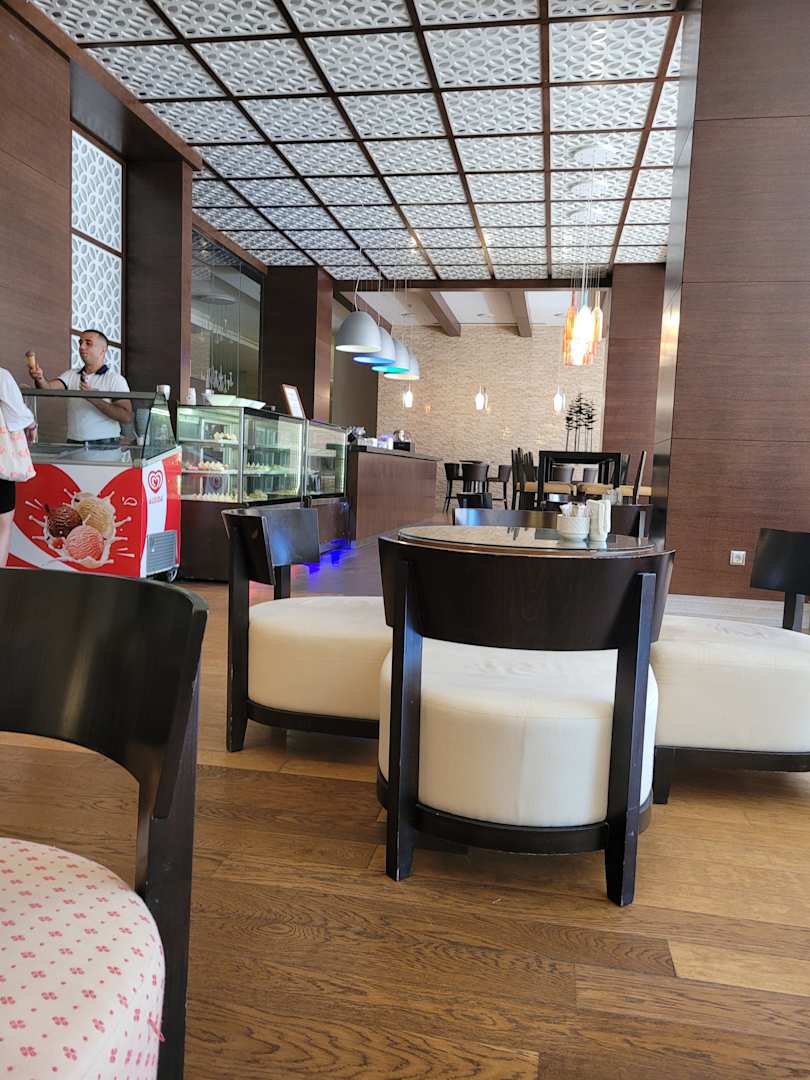 Aufenthaltsraum bei den Pools mit einer kleinen Snacktheke.