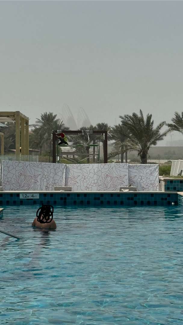 Blick vom Pool auf die Baustelle
