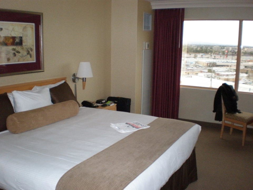 Bett mit Ausblick auf die Stadt