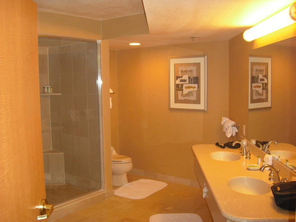 zeigt die Dusche, Toilette und Waschbecken. Links auf diesem Bild nicht sichtbar befand sich der Whirlpool mit Falttüren zum Wohnzimmer getrennt.