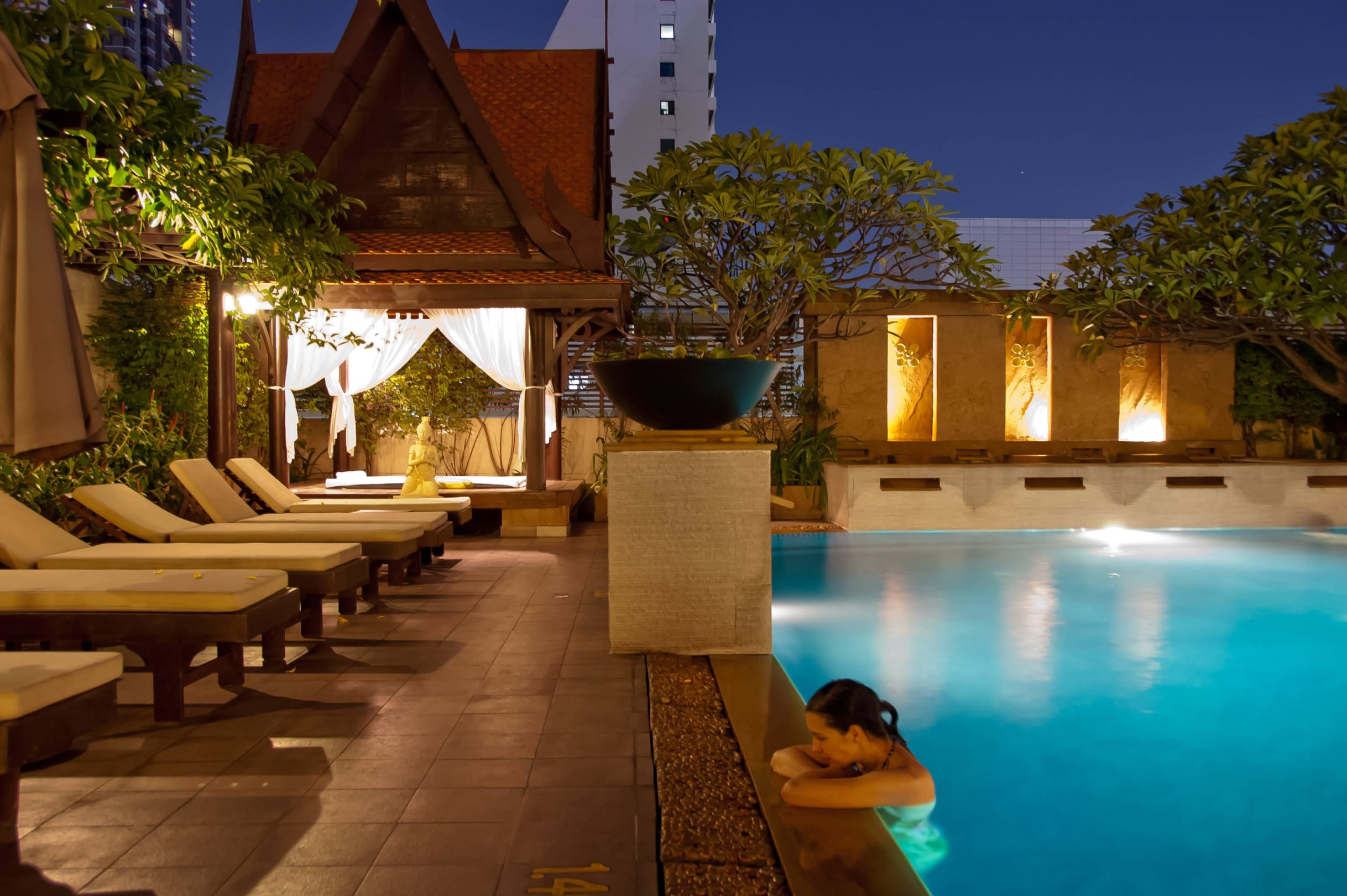 Woda nieco zimna, basen wygląda lepiej nocą
