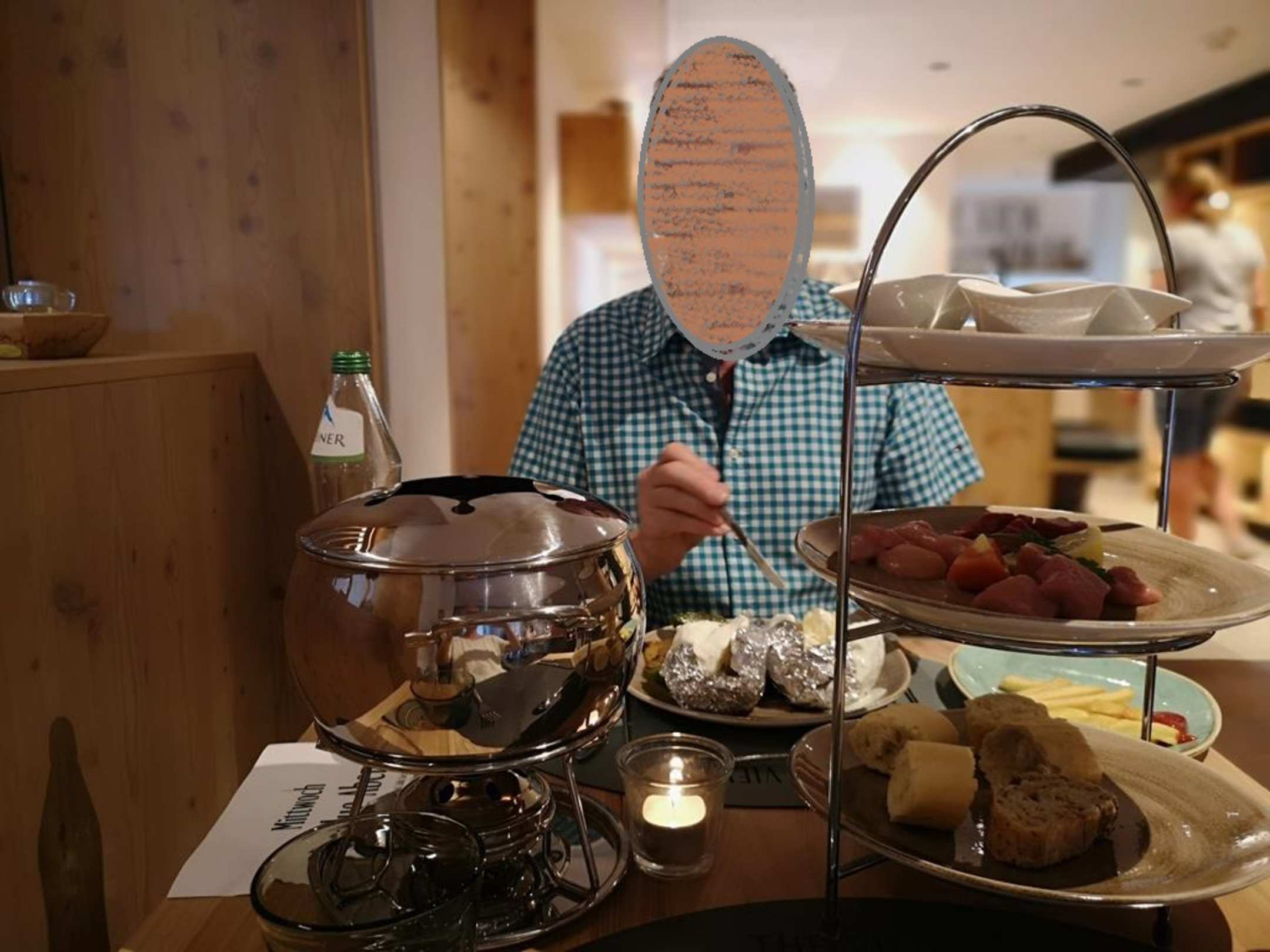 Fondueabend. Nichts für Vegetarier, da lieblos, einfallslos und wenig schmackhaft. Schade.