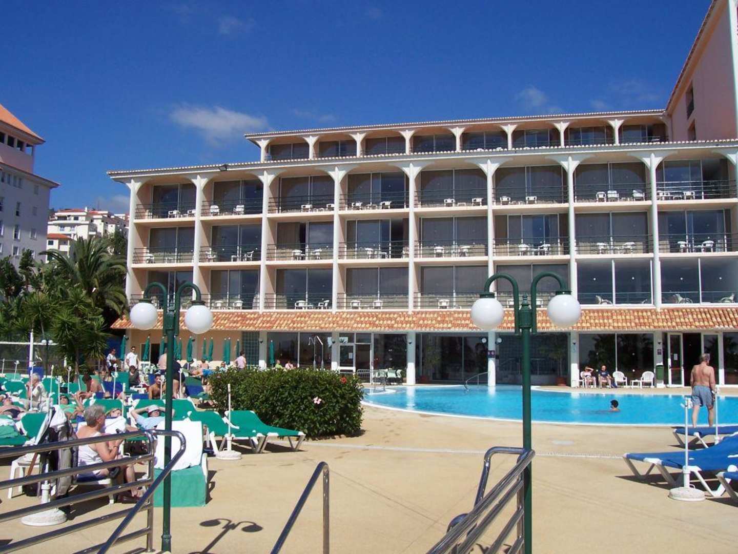 Aussicht vom Pool zum Hotel