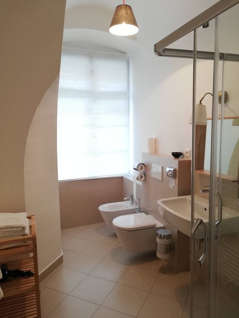 Modernes, sehr sauberes Badezimmer. Ein Föhn war vorhanden.