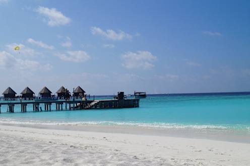 Mein Bruder beim Parasailing über den Bungalows