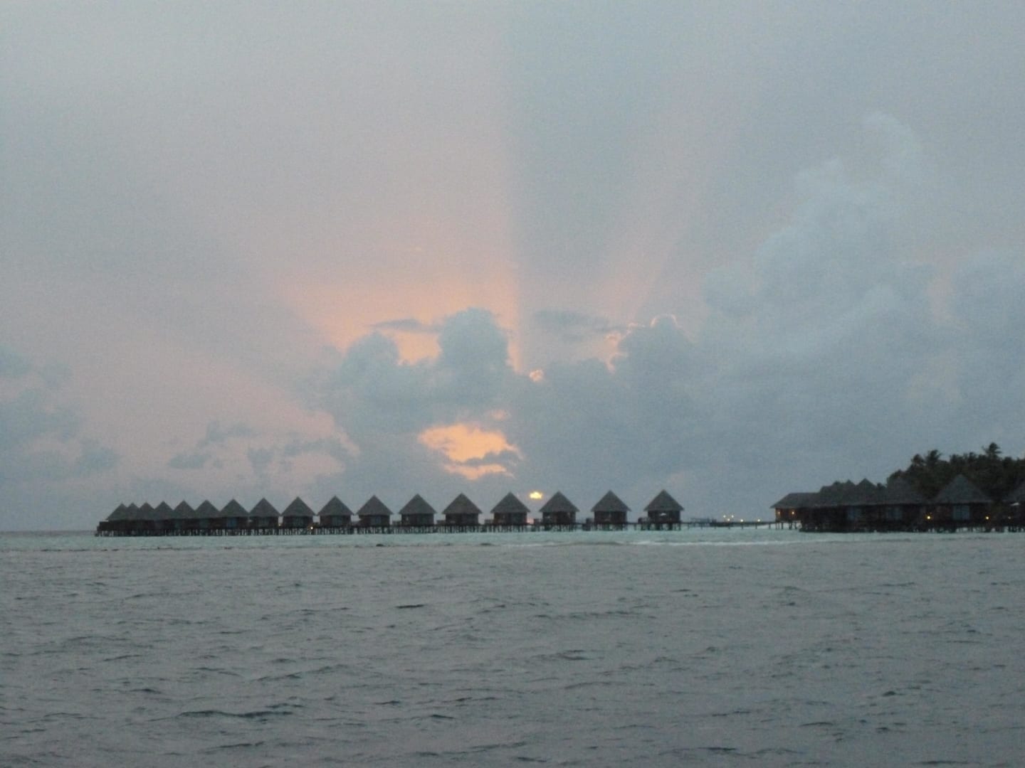 Sonnenuntergang über den Wasserbungalows