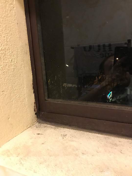 ZimmerAuch am Fenster und auf der Fensterbank bzw. in den Dichtungen/Fugen gab es Schimmel und jede Menge Schmutz und Staub! (Zimmer 303)