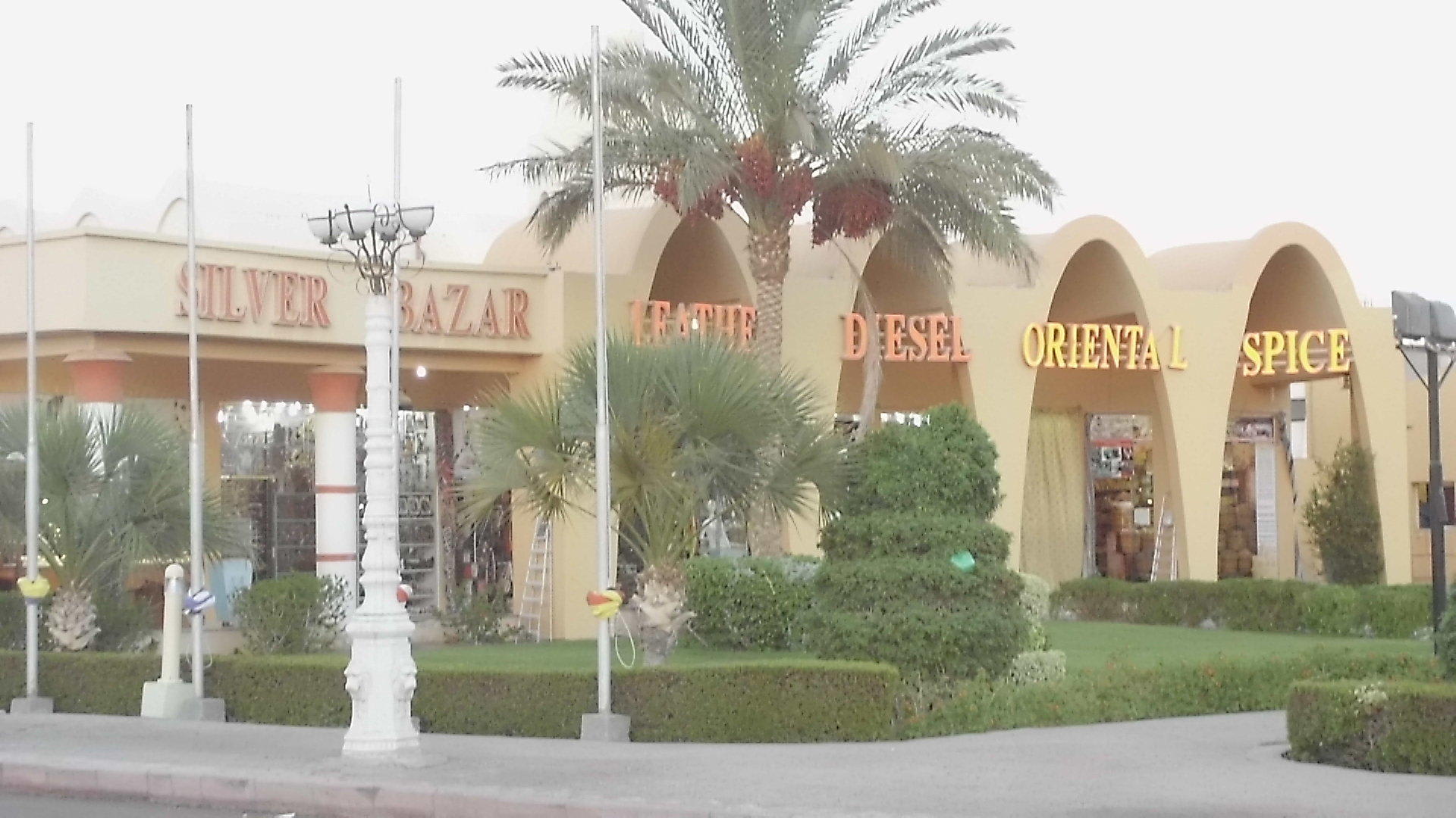 Vor dem Hotel viele Geschäfte