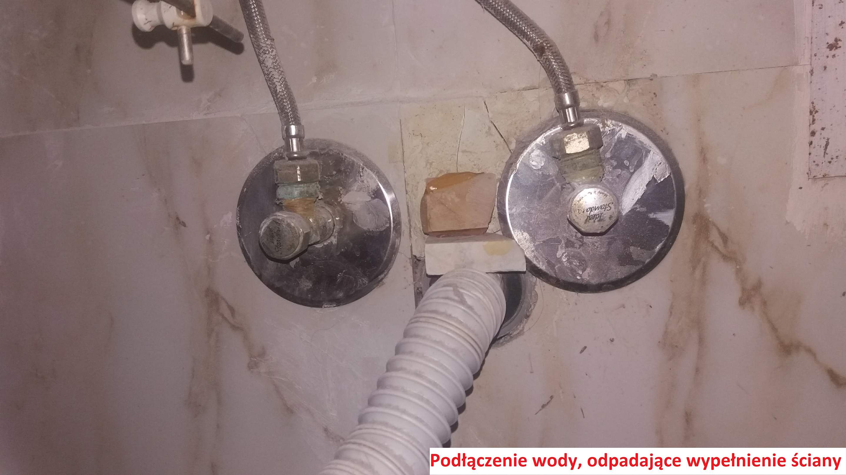 Podłączenie wody do umywalki - ubytki ściany, które odpadały