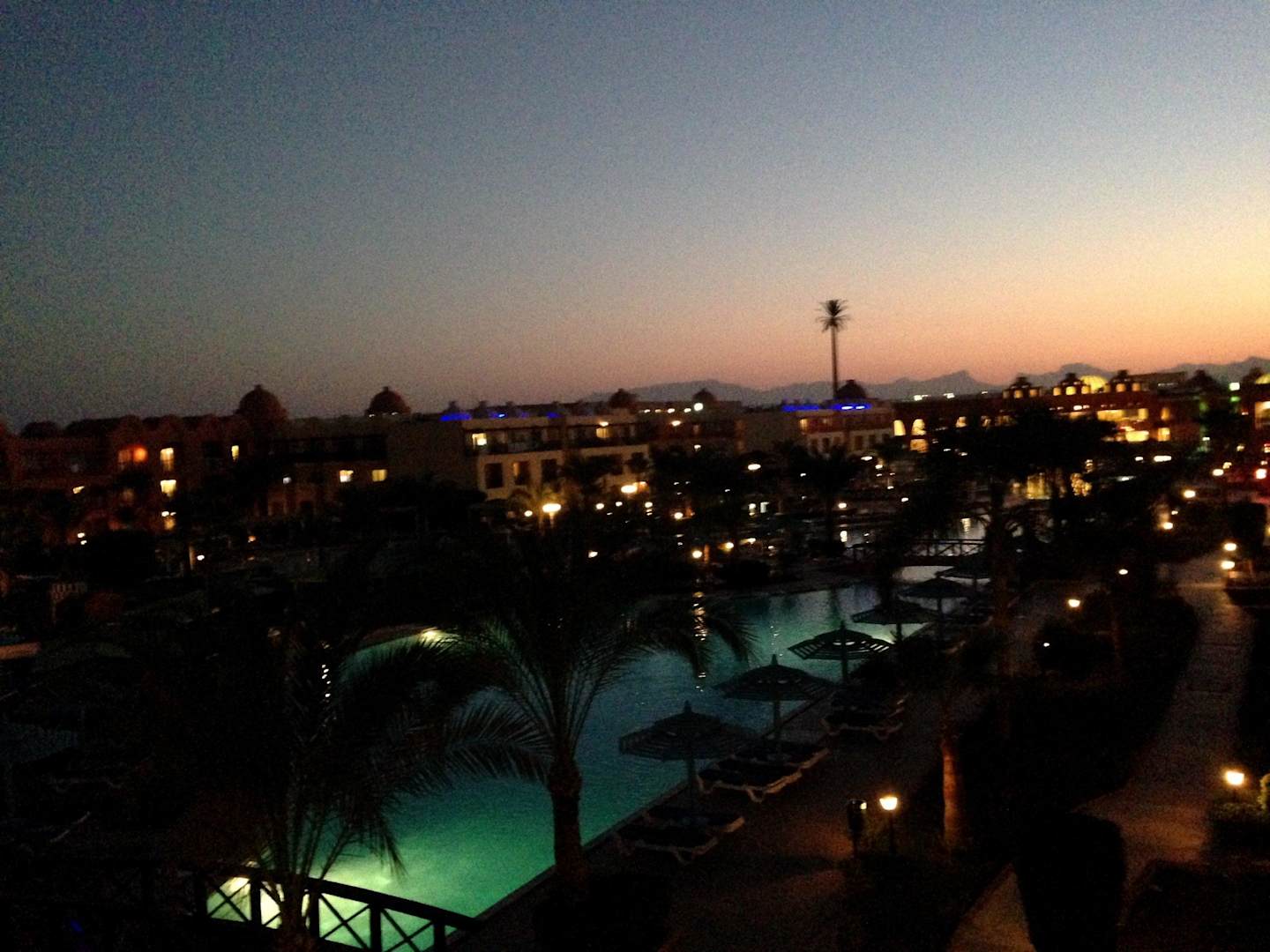 Blick auf den Pool abends