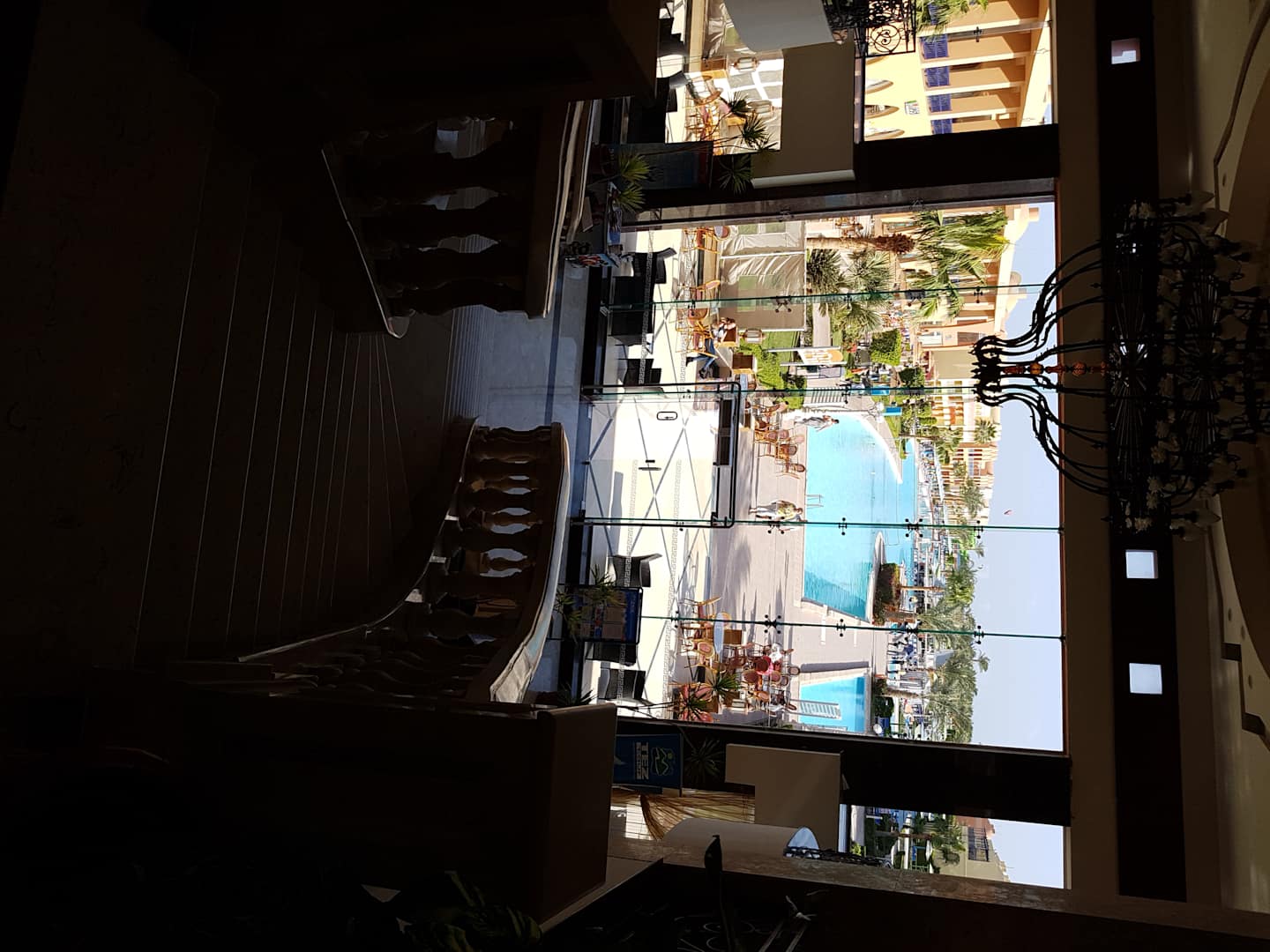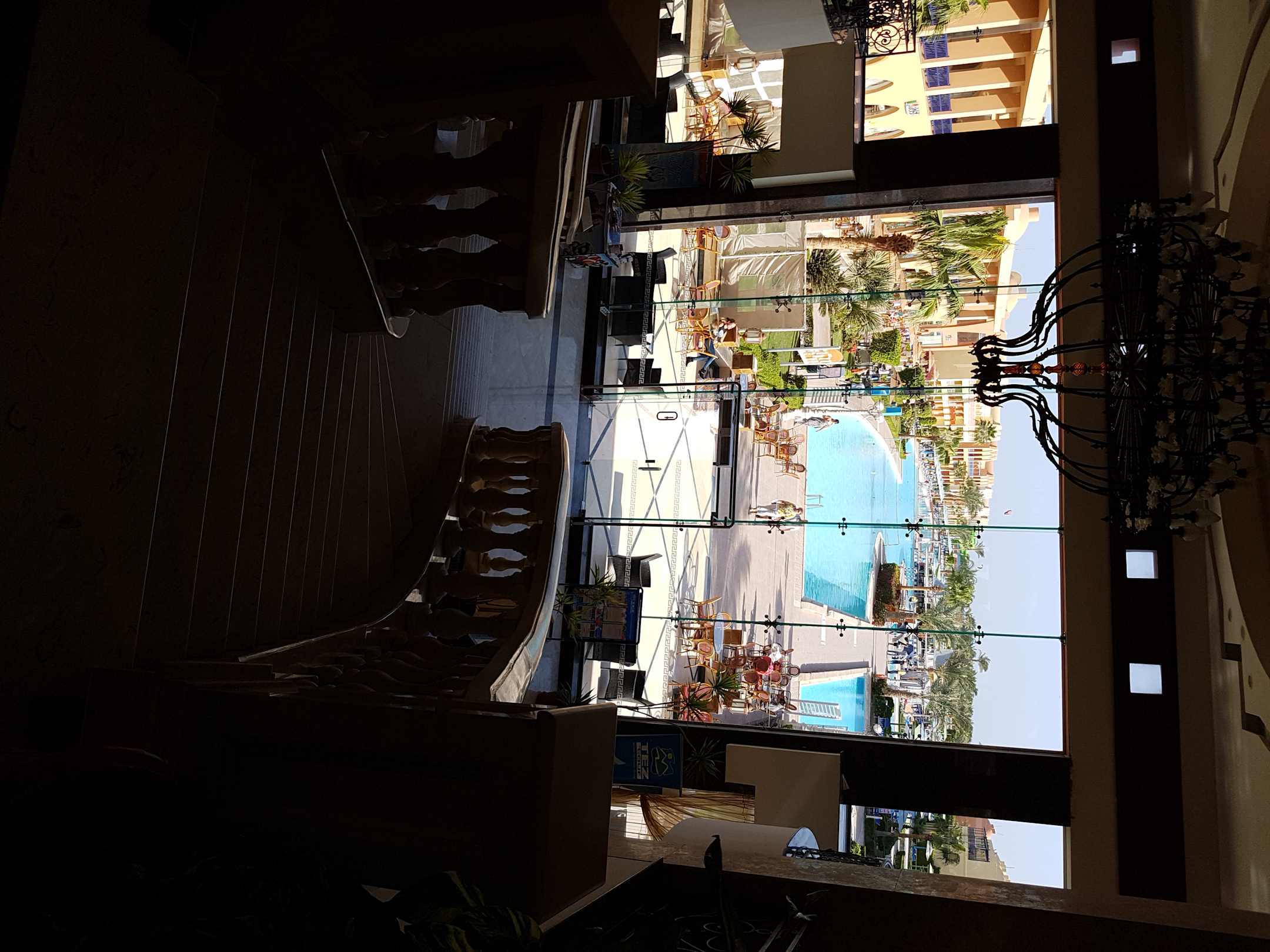 Blick von der Lobby auf die Anlage / die Pools