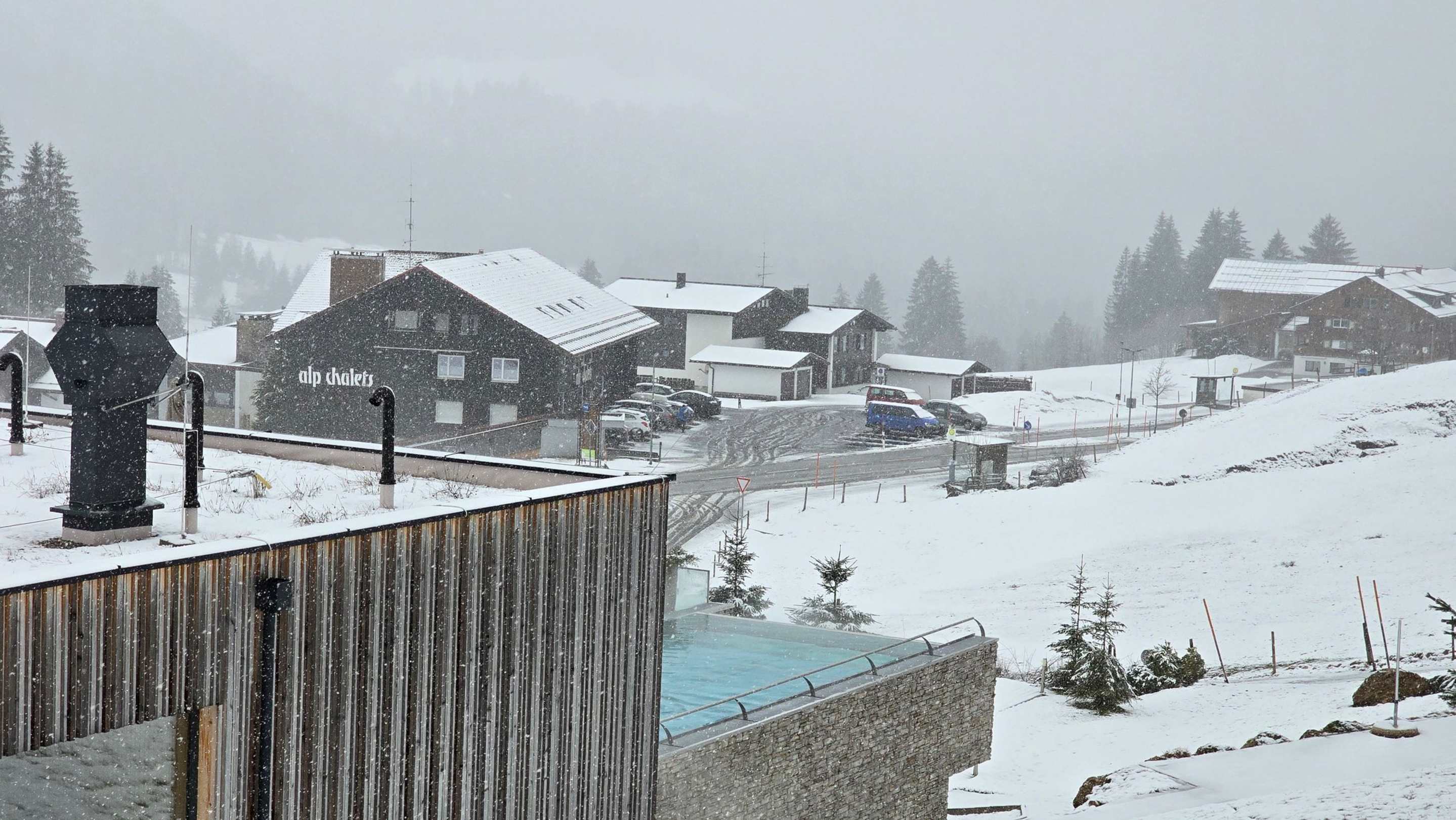Blick aus dem Zimmer auf den Außenpool