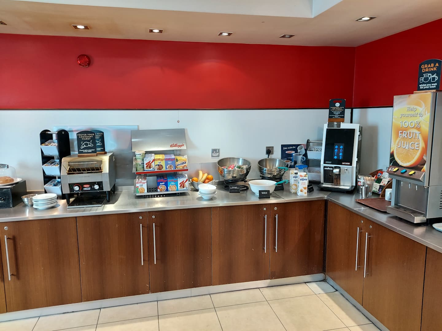Toast, Müsli, Obst, Kaffe, Tee und Saft