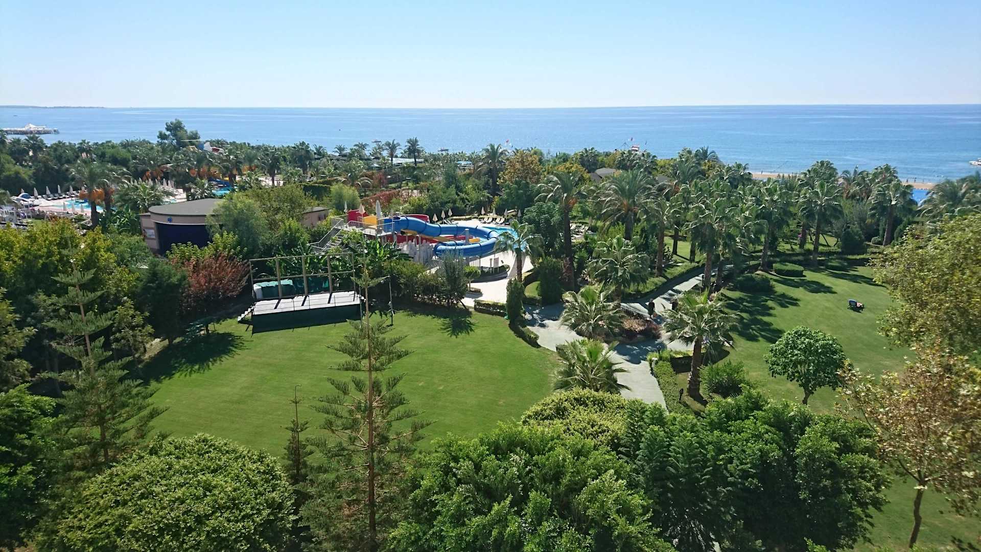 Der sehr gepflegte Hotelgarten des Aspendos