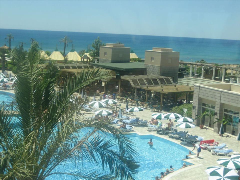 Blick von Rezeption auf Pool und As Pool Bar