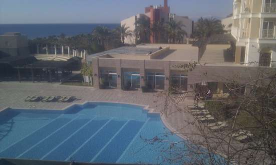 Hotel Pool mit Hallenbad im Hintergrund