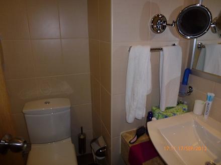 Das BadPlatz für eine Person, mit einer Drehung konnte man alles erreichen. SEHR klein und eng.