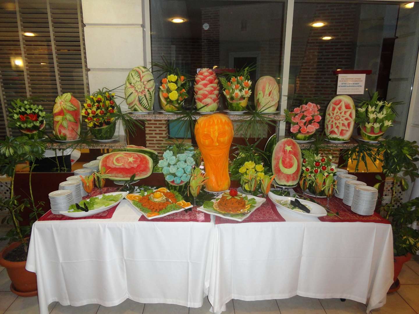 Beeindruckende Schnitzereien beim Büffet