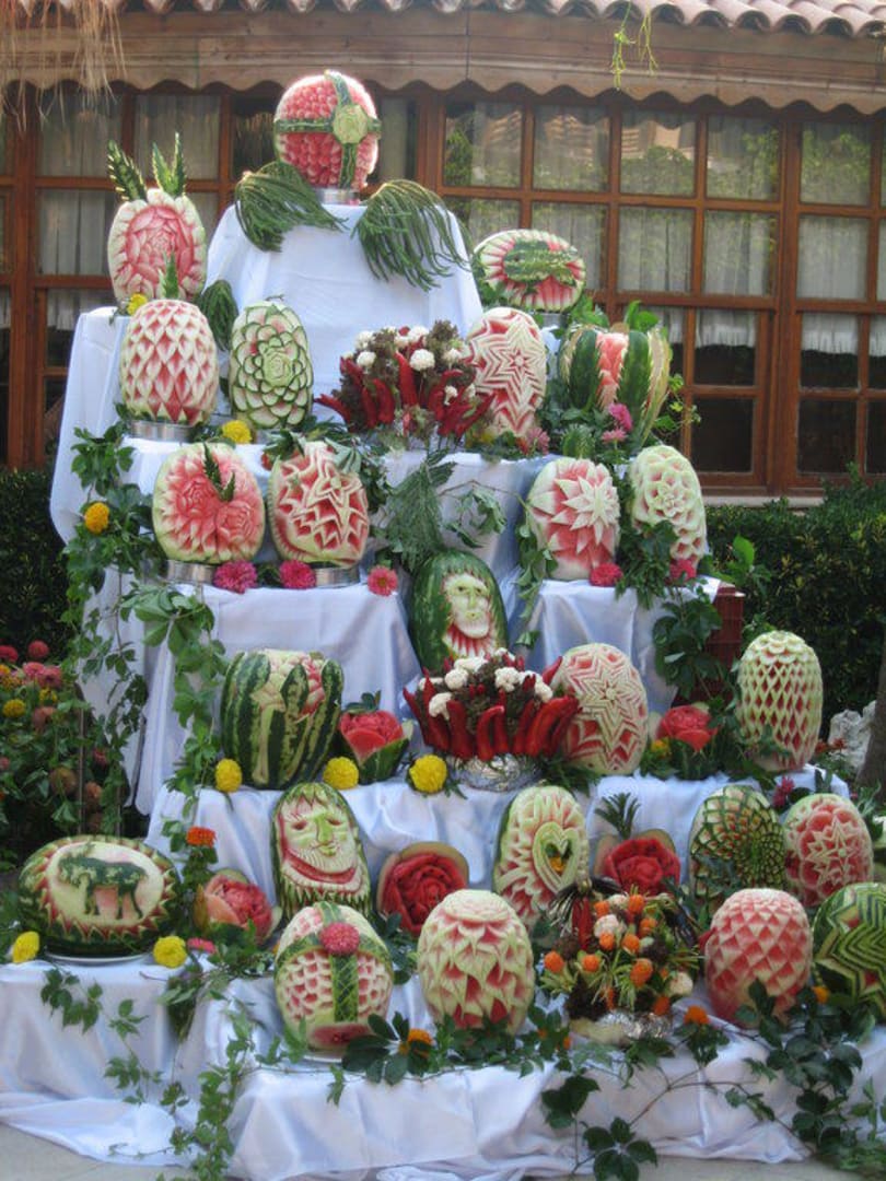 auf dem Bild sind handgeschnitzte Melonen zu sehen... muss man live gesehen haben