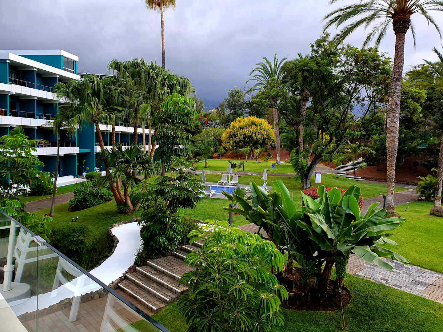 Aussicht Barterrasse auf Hotelgelände