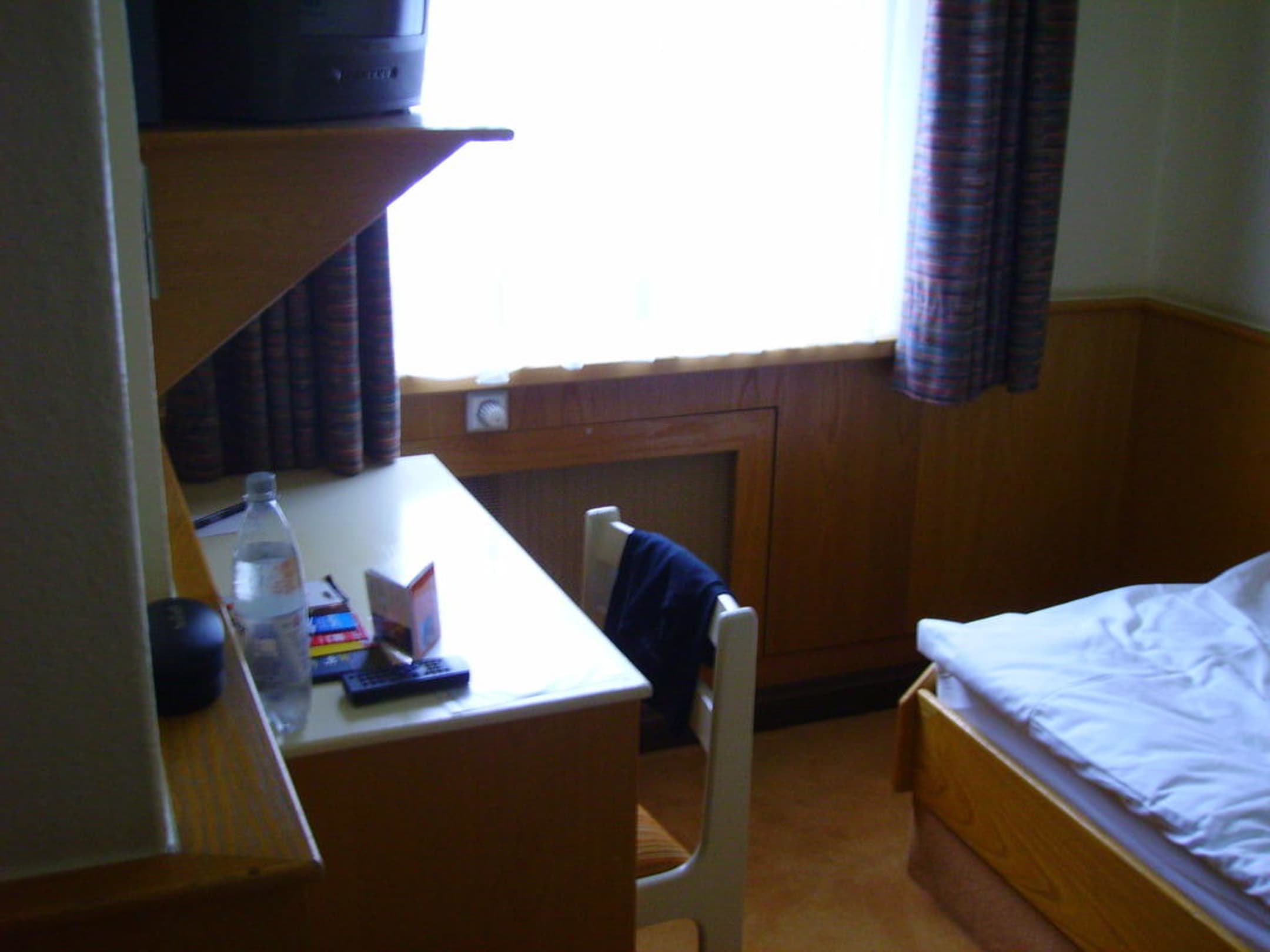 Schreibtisch, Bett, Fernseher.