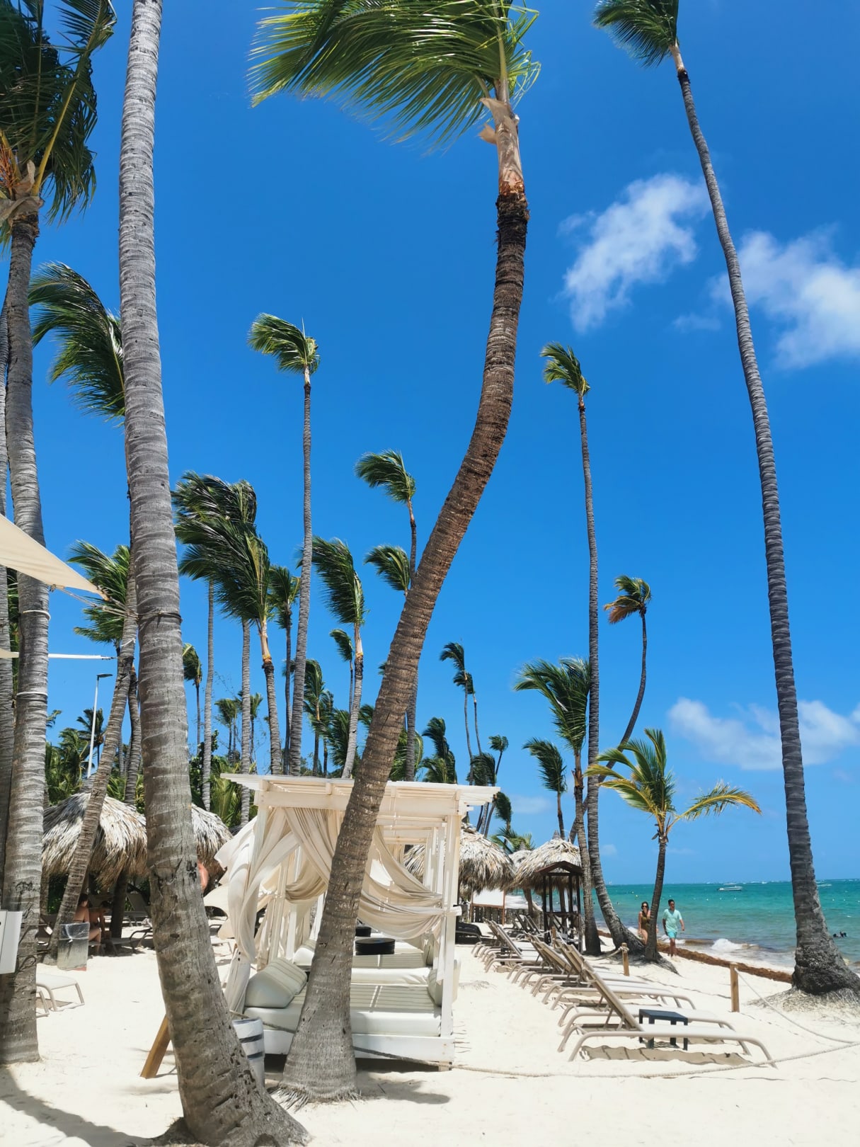 Alle Liegen sind am Strand kostenlos, die Betten müssen reserviert werden und kosten 50 Dollar.