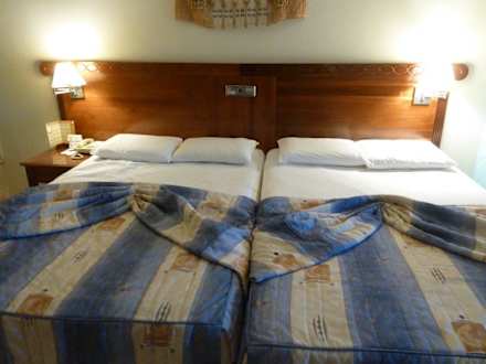 Da es nicht möglich war ein Doppelbett zu bekommen, mussten wir die Betten zusammenschieben und mit der Ritze in der Mitte Vorlieb nehmen.