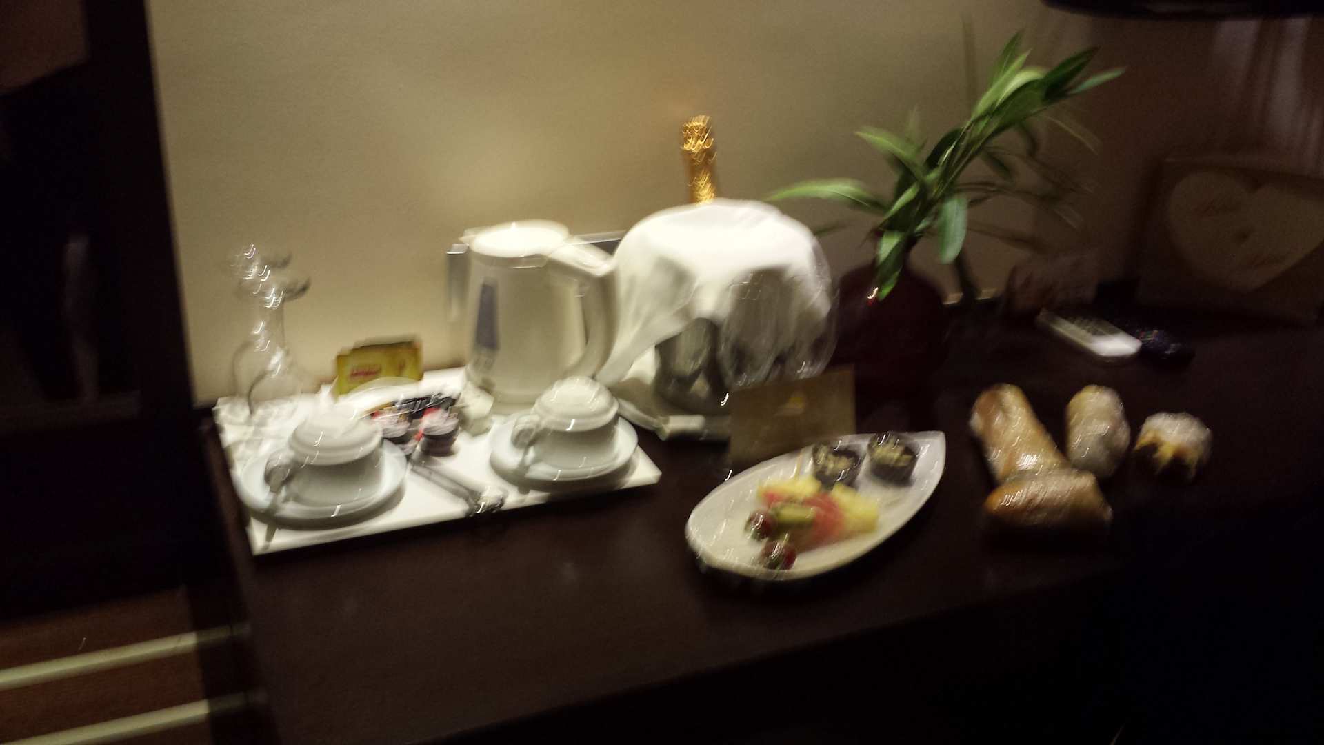 RestaurantFree sparkling wine, baguette and chocolat fruits on arrival in the middle of the night