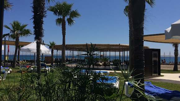 Blick vom Pool zum Strand