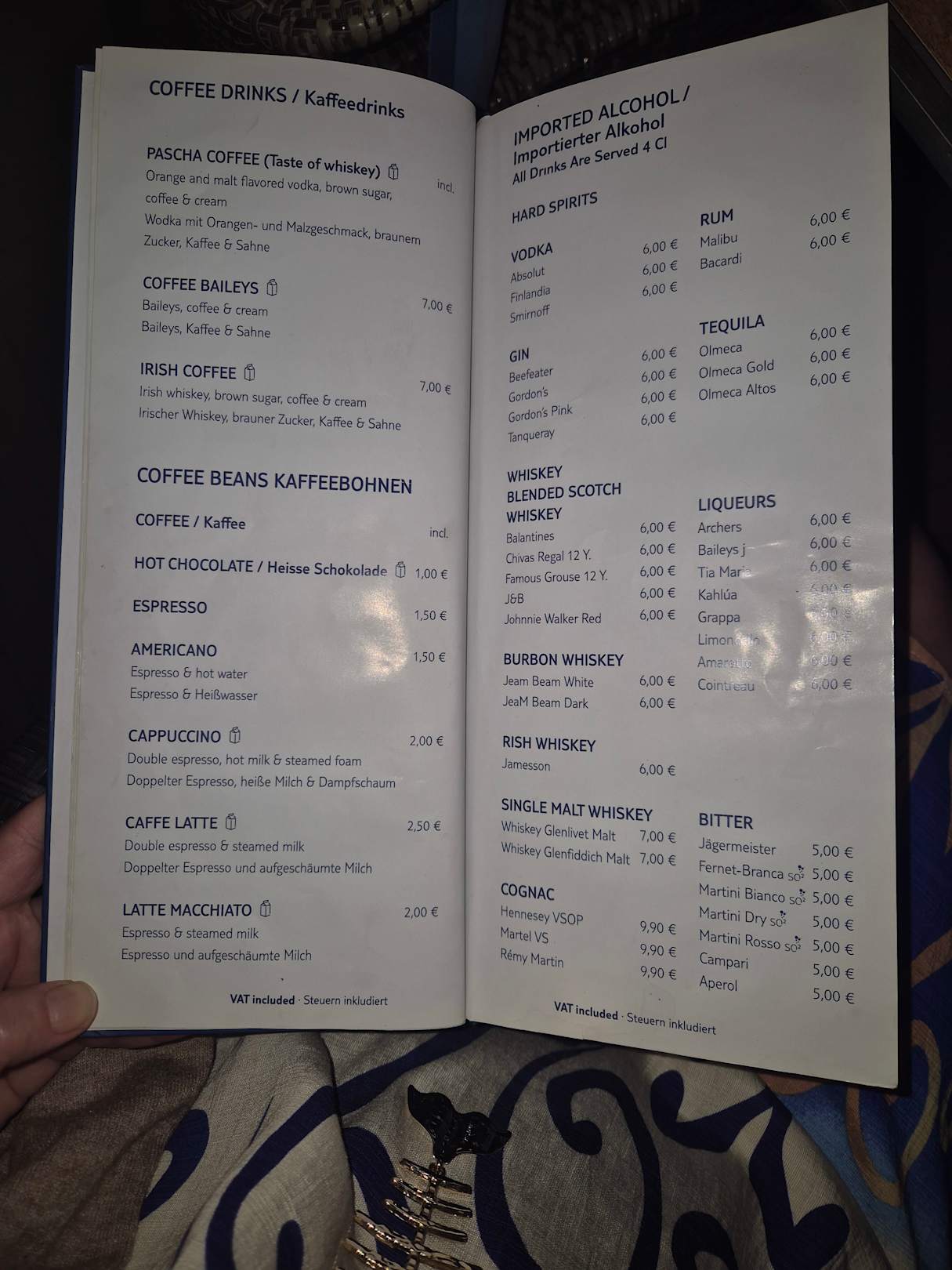 die Karte mit all den All inklusive und NICHT All inklusive Getränken