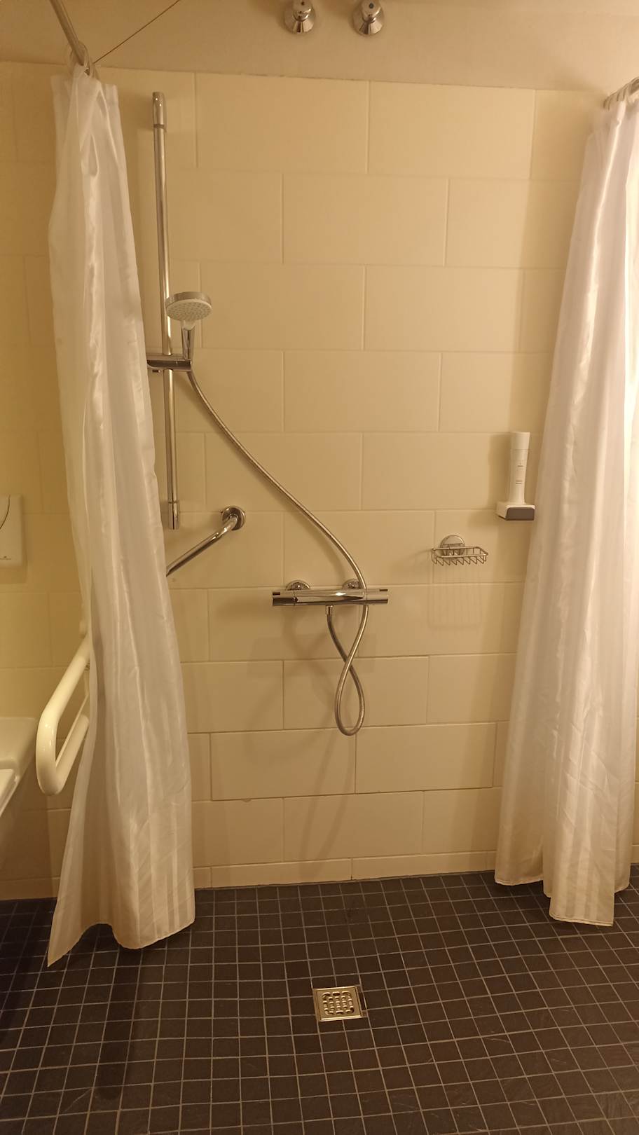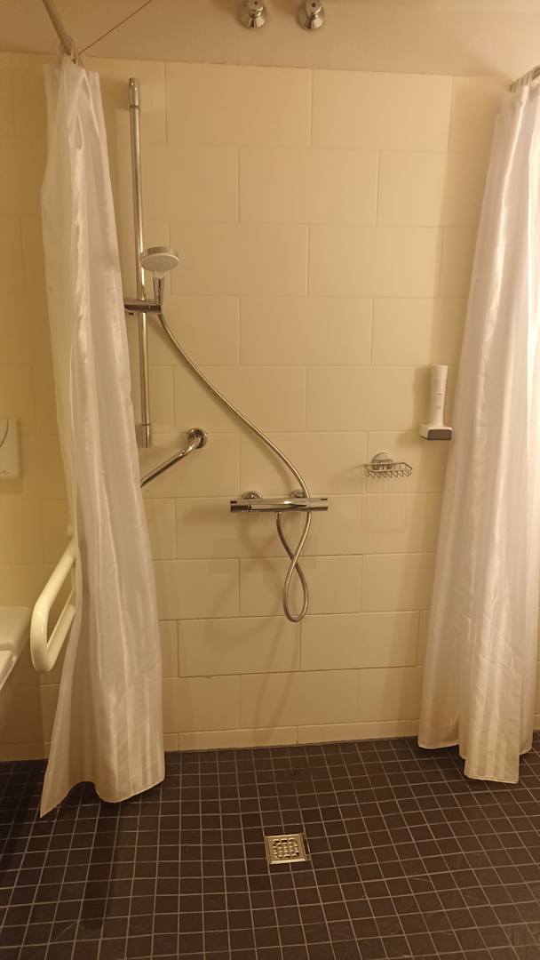 ZimmerDusche, Zimmer 002 unangenehmer Urin Geruch beim Duschen sobald der Boden bzw. Abfluss mit Wasser in Kontakt kommt.