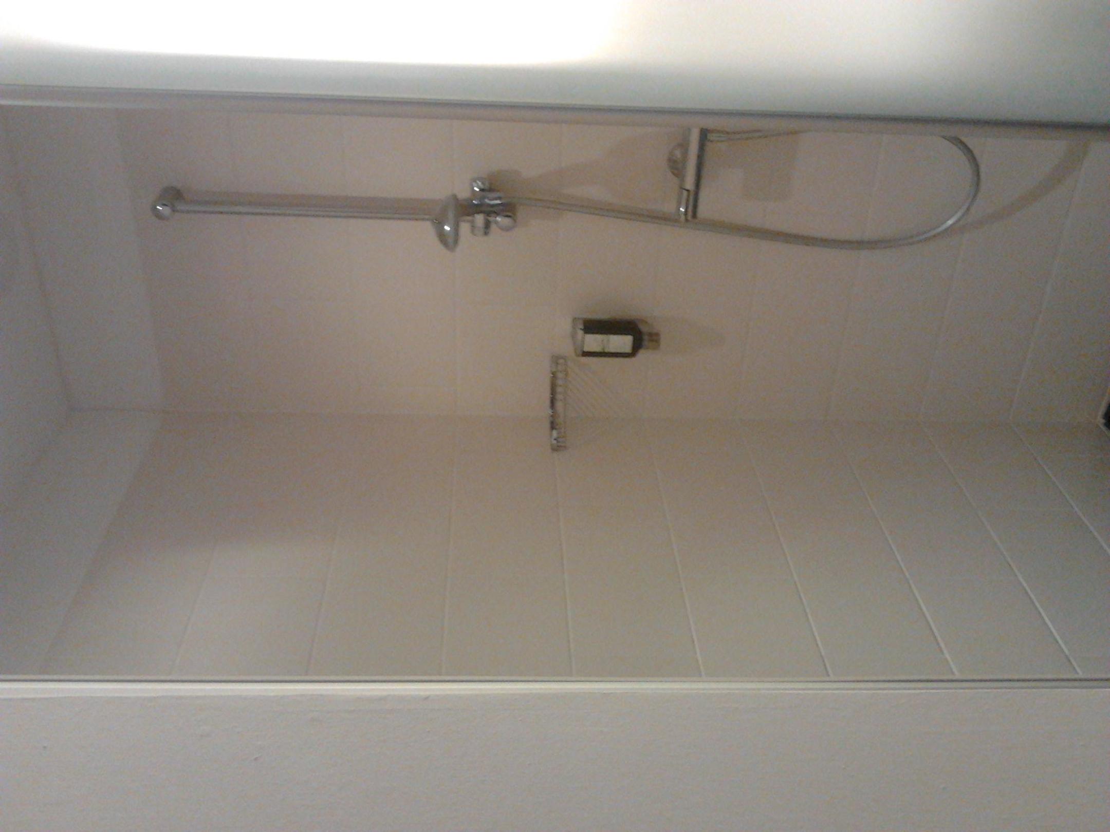 Dusche durch Glastür getrennt