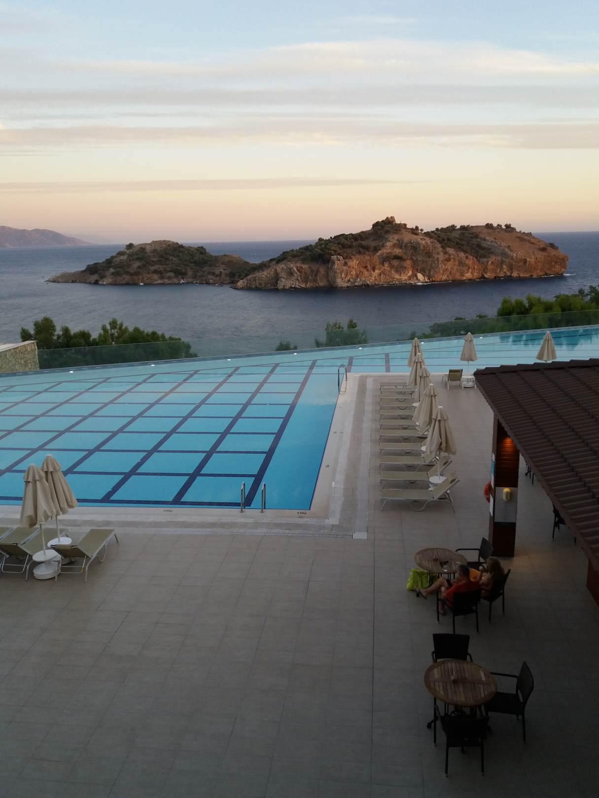 Blick vom Hauptrestaurant zur vorgelagerten Insel Baba