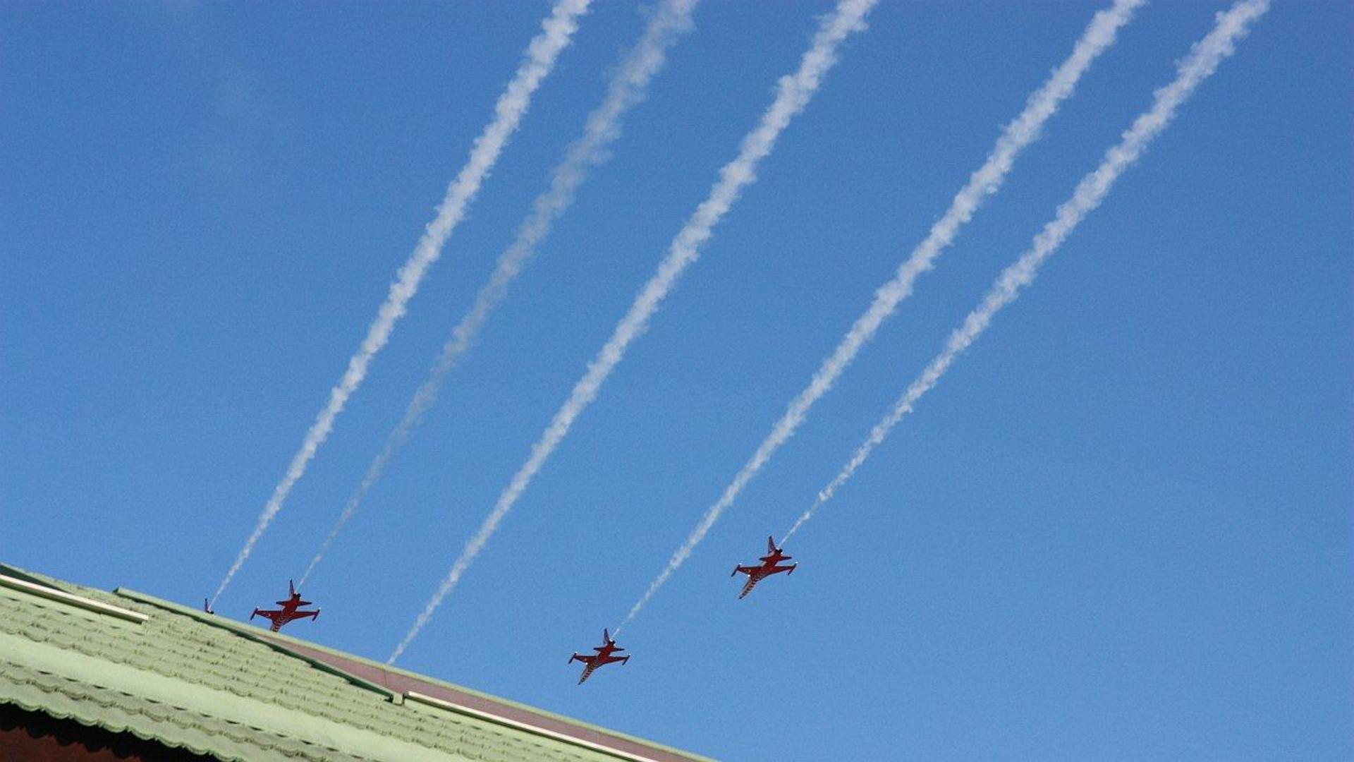 Flugschau vor bzw. über dem Hotel