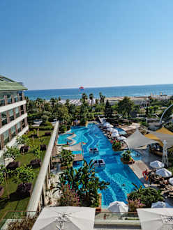 Meerblick-Zimmer, Nr. 3303; Ausblick auf die Poolanlage in Richtung Strand