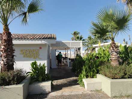 Weg vom Hotel zum Strand mit Strandbar