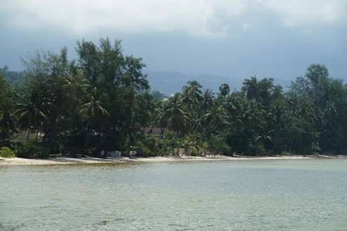 Blick vom Wasser auf das Hotel