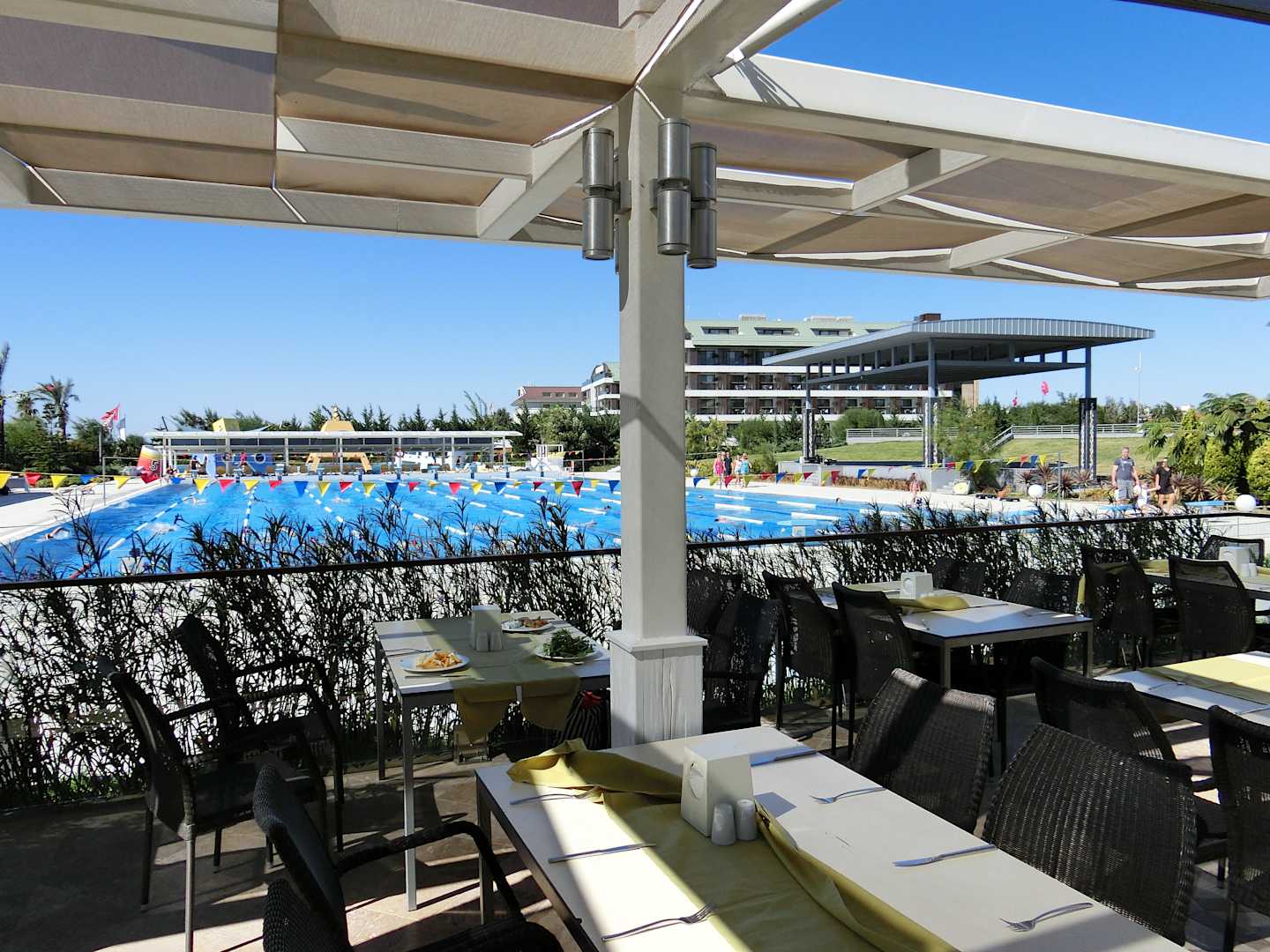 Blick vom Restaurant zum Olympiapool