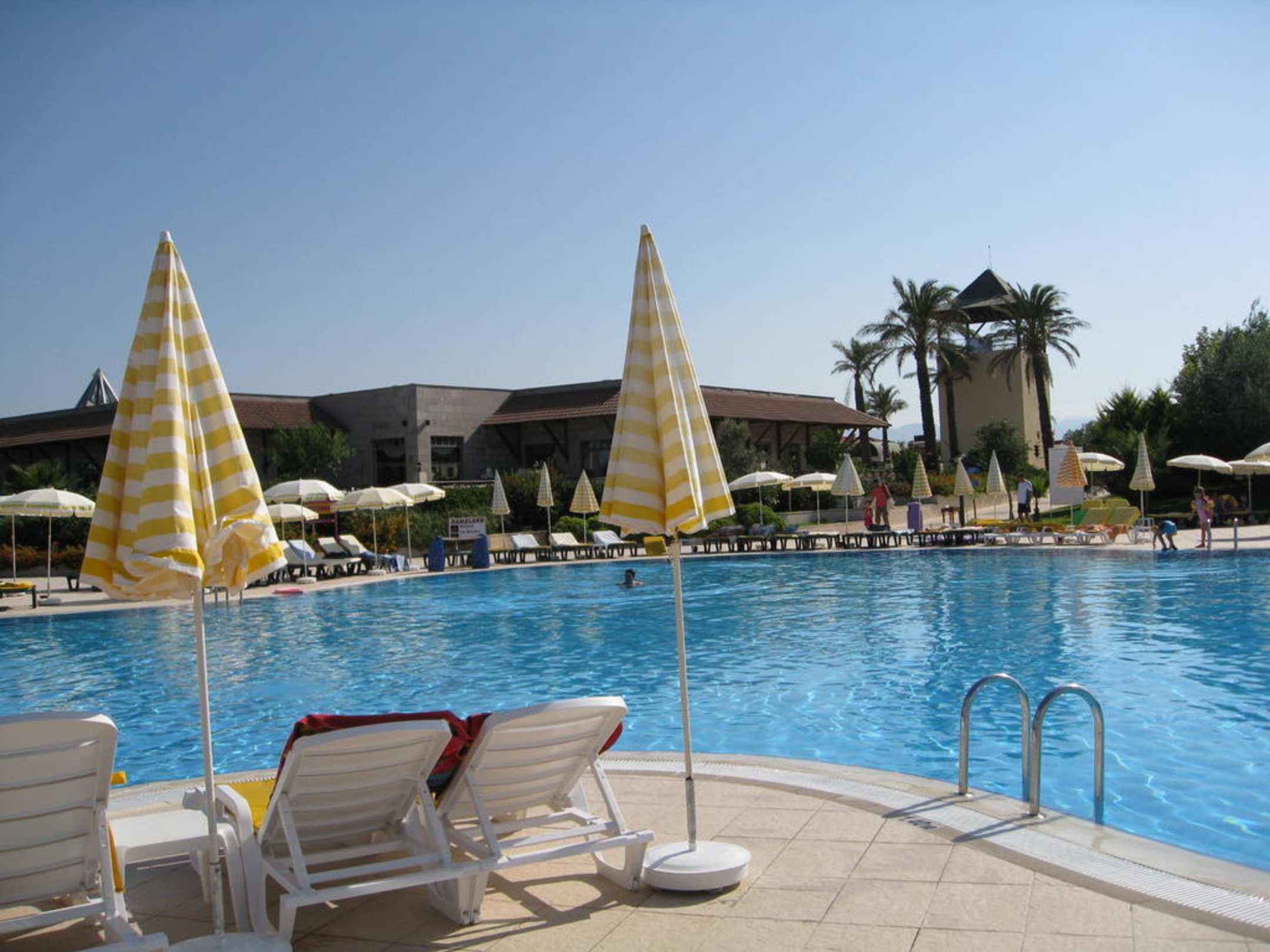 Blick vom Pool zum Hauptrestaurant