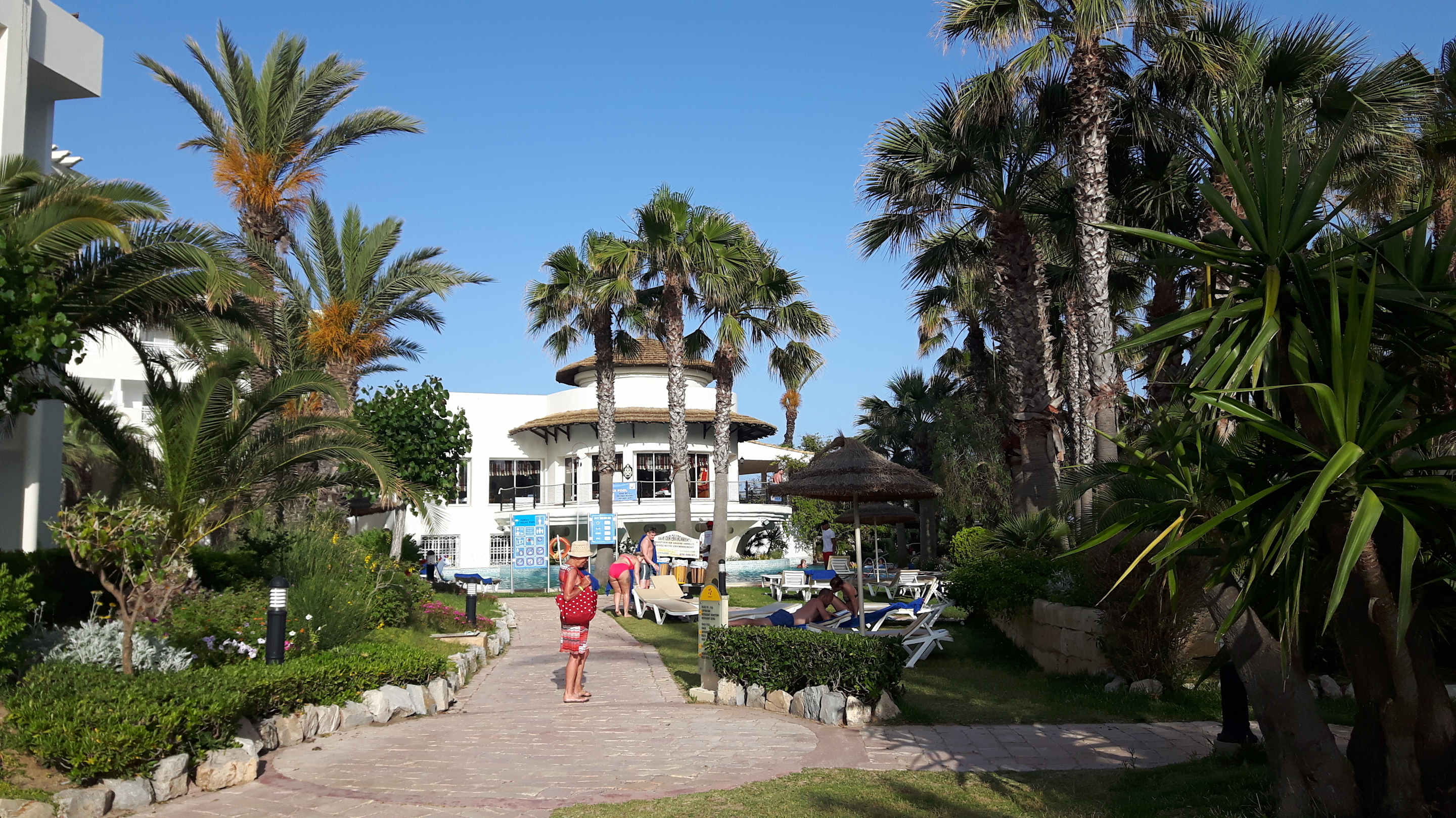Weg durch die Anlage in Richtung Captainsbar u. A la Carte Restaurants