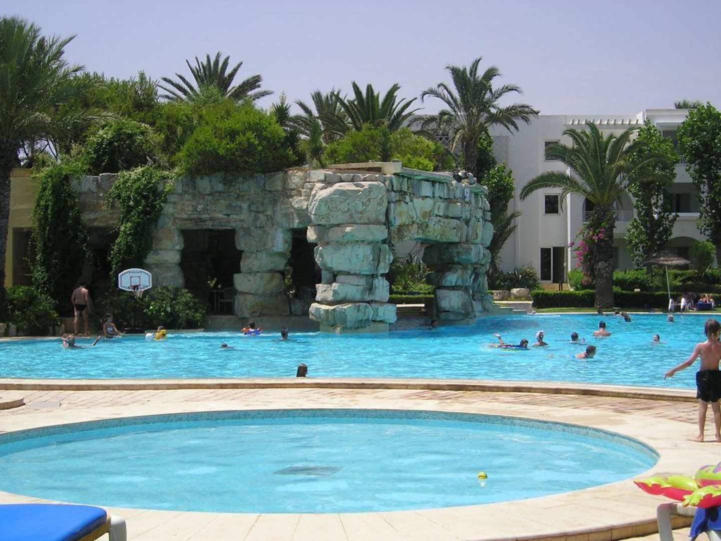 Pool mit Wasserfall. Hinter dem Wasserfall ist eine Bar mit Sitzgelegenheit, hier ist es allerdings zu laut zum Sitzen (Geplätscher des Wassers!)