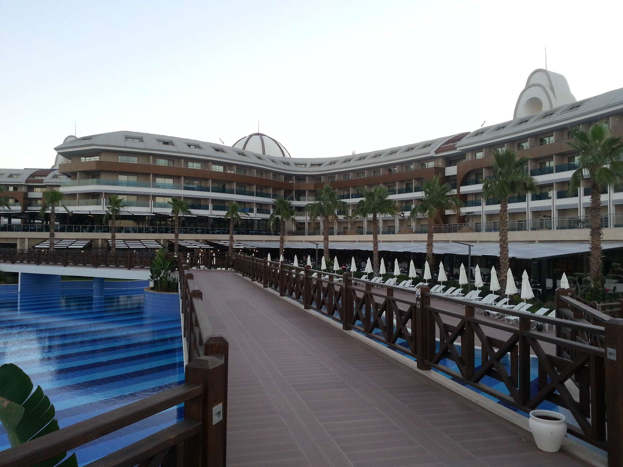 Hotelansicht von der Brücke aus.